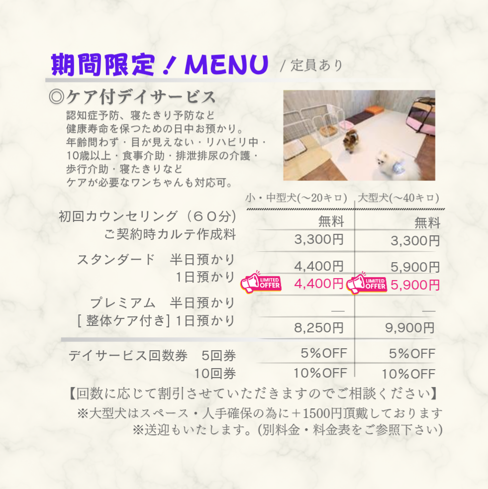 シニア犬のためのデイケア&介護サポート
